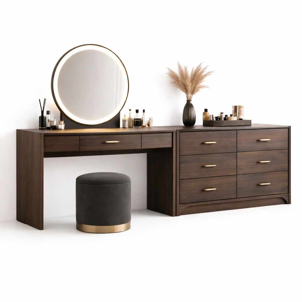 Schminktisch Set Braun Holz Modern Mit Spiegel Und Kommode