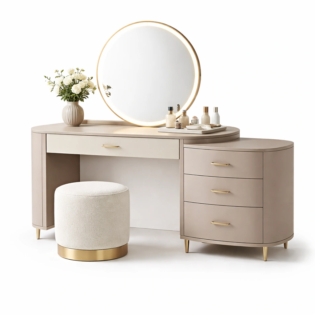 Schminktisch Set Beige Modern Gross Mit Spiegel Und Stauraum