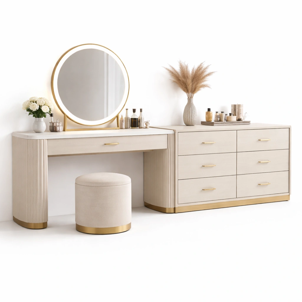 Beschreibung:Dieses elegante Schminktisch-Set bietet eine harmonische Kombination aus Stil und Funktion und f??gt sich nahtlos in moderne Wohnr?ume ein.